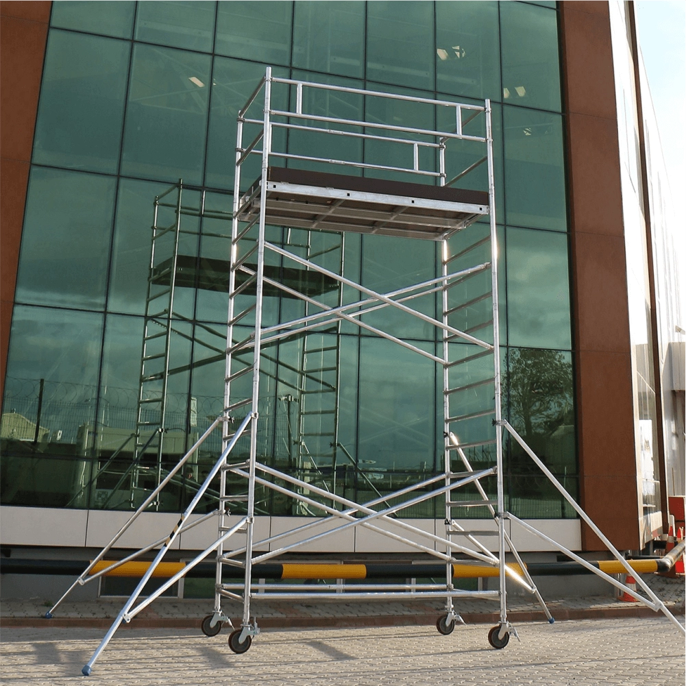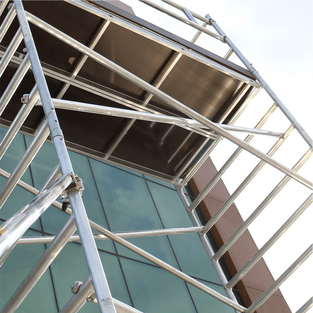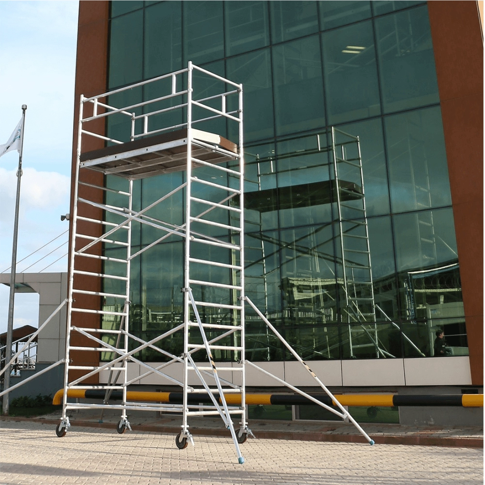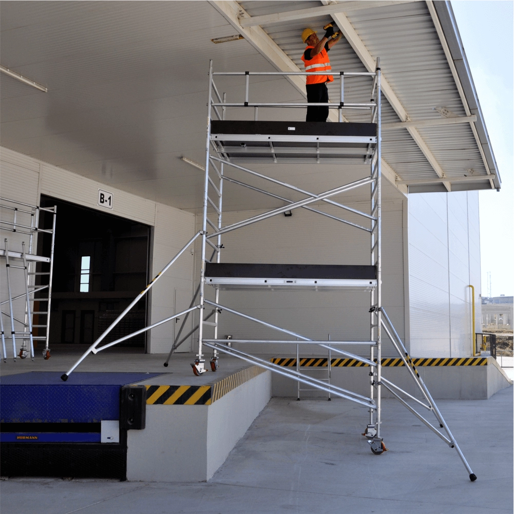 - Structură din aluminiu – raport bun rezistență/greutate față de schelele din oțel